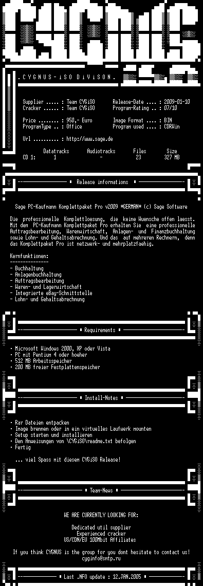| FiLENAME: | Sage PC Kaufmann Komplettpaket Pro v2009 GERMAN-CYGiSO.bin |