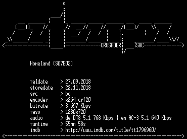 | FiLENAME: | Homeland.S07E02.German.DL.720p.BluRay.x264-iNTENTiON.mkv |