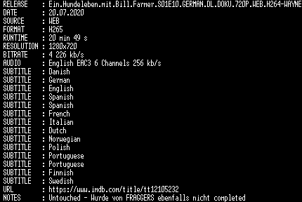 | FiLENAME: | Ein.Hundeleben.mit.Bill.Farmer.S01E10.GERMAN.DL.DOKU.720P.WEB.H264-WAYNE.mkv |