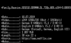 | FiLENAME: | Family.Reunion.S01E10.GERMAN.DL.720p.WEB.x264-EiSBOCK.mkv |