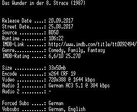 | FiLENAME: | Das.Wunder.in.der.8.Strasse.German.REMASTERED.1975.AC3.BDRip.x264-SPiCY.mkv |