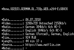 | FiLENAME: | Anne.S02E03.GERMAN.DL.720p.WEB.x264-EiSBOCK.mkv |