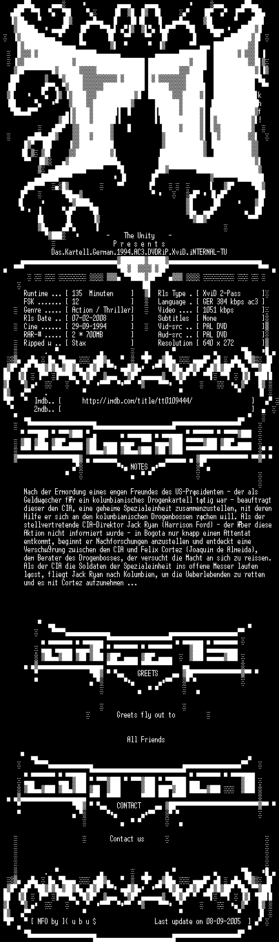 | FiLENAME: | Das Kartell (1994) [GER-AC3 WS DVD] CD1.avi |