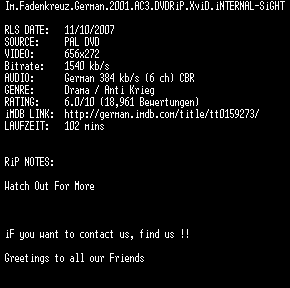 | FiLENAME: | Im Fadenkreuz (2001) [GER-AC3 WS DVD] CD2.avi |