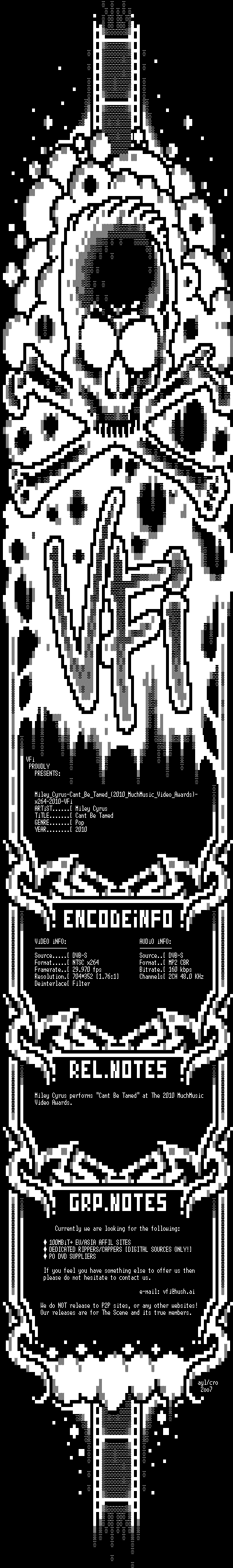 | FiLENAME: | Miley_Cyrus-Cant_Be_Tamed_(2010_MuchMusic_Video_Awards)-x264-2010-VFi.mkv |