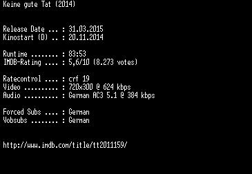 | FiLENAME: | Keine.gute.Tat.German.BDRiP.x264-EXQUiSiTE.mkv |