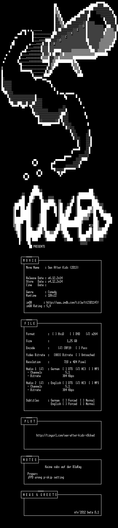 | FiLENAME: | Sex.After.Kids.German.2013.DL.AC3.BDRiP.PROPER.x264-R0CKED.mkv |