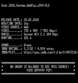 | FiLENAME: | Goat.2016.German.WebRip.x264-SLG.mkv |