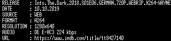 | FiLENAME: | Into.The.Dark.2018.S01E06.GERMAN.720P.WEBRIP.X264-WAYNE.mkv |