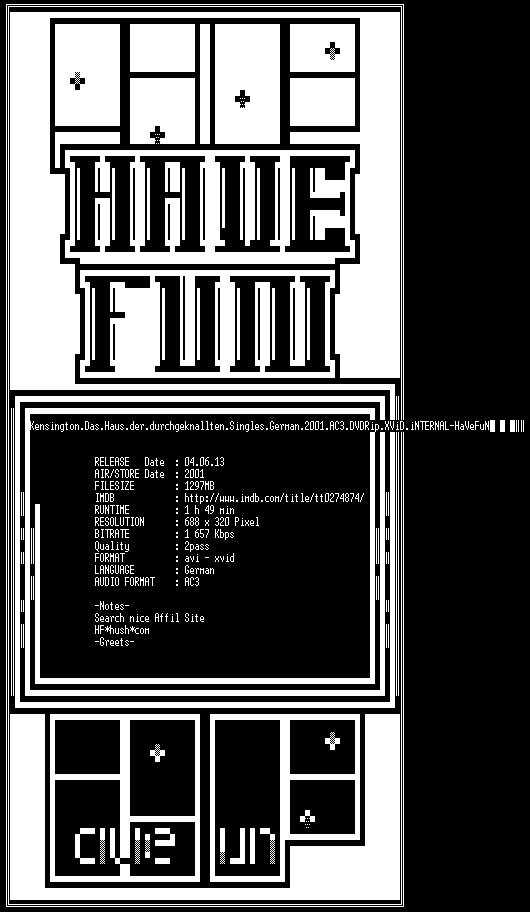 | FiLENAME: | Kensington.Das.Haus.der.durchgeknallten.Singles.German.2001.AC3.DVDRip.XViD.iNTERNAL-HaVeFuN.avi |