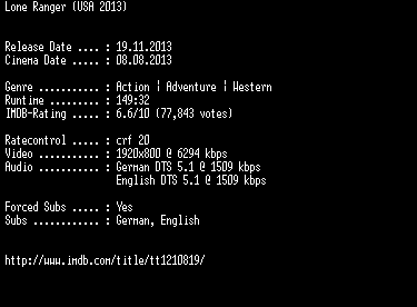 | FiLENAME: | Lone.Ranger.German.DL.1080p.BluRay.x264-EXQUiSiTE.mkv |