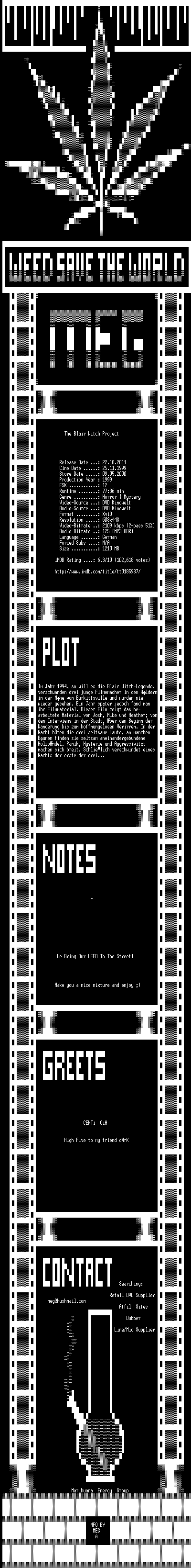 | FiLENAME: | The.Blair.Witch.Project.German.1999.DVDRip.XviD.iNTERNAL-MEG.avi |