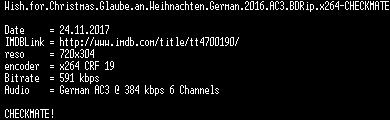 | FiLENAME: | Wish.for.Christmas.Glaube.an.Weihnachten.German.2016.AC3.BDRip.x264-CHECKMATE.mkv |