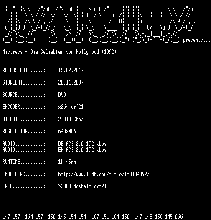 | FiLENAME: | Mistress.Die.Geliebten.von.Hollywood.1992.German.DVDRip.x264-TVARCHiV.mkv |