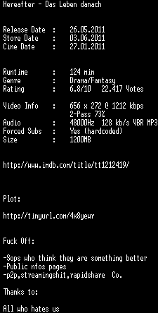 | FiLENAME: | Hereafter.Das.Leben.danach.German.DVDRip.XviD-DiSTRiCT.avi |