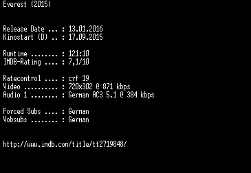 | FiLENAME: | Everest.German.2015.AC3.BDRiP.x264-EXQUiSiTE.mkv |