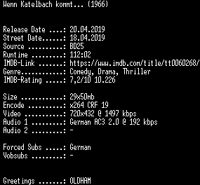 | FiLENAME: | Wenn.Katelbach.kommt.German.1966.AC3.BDRip.x264-SPiCY.mkv |