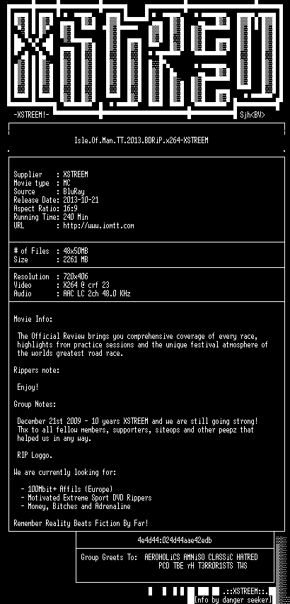 | FiLENAME: | Isle.Of.Man.TT.2013.BDRiP.x264-XSTREEM.mkv |