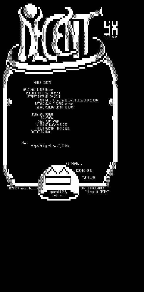 | FiLENAME: | Noise.German.2007.BDRip.XviD-DECENT.avi |