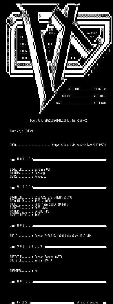 | FiLENAME: | Fuer.Jojo.2022.GERMAN.1080p.WEB.H265-FX.mkv |