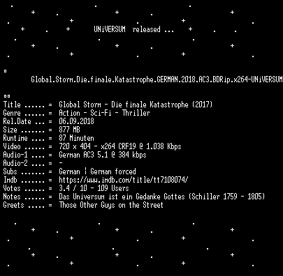 | FiLENAME: | Global.Storm.Die.finale.Katastrophe.GERMAN.2018.AC3.BDRip.x264-UNiVERSUM.mkv |