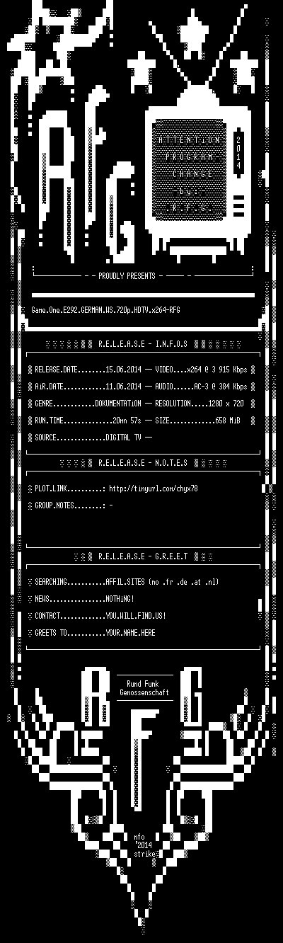 | FiLENAME: | Game.One.E292.GERMAN.WS.720p.HDTV.x264-RFG.mkv |