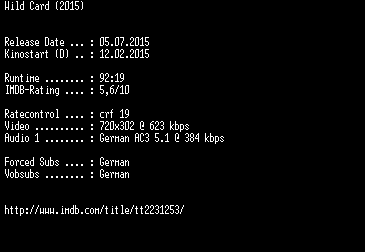 | FiLENAME: | Wild.Card.German.2015.AC3.BDRiP.x264-EXQUiSiTE.mkv |