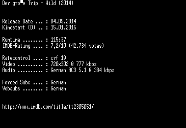 | FiLENAME: | Der.grosse.Trip.Wild.German.BDRiP.x264-EXQUiSiTE.mkv |