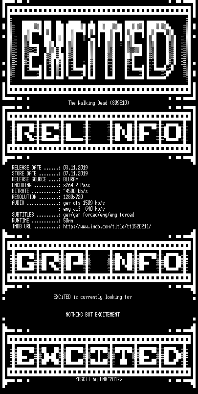 | FiLENAME: | The.Walking.Dead.S09E10.German.DL.720p.BluRay.x264-EXCiTED.mkv |