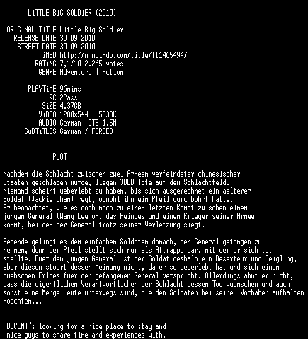 | FiLENAME: | Little Big Soldier (2010) [GER-dts 720p BD].mkv |
