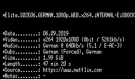 | FiLENAME: | Elite.S02E06.GERMAN.1080p.WEB.x264.iNTERNAL-EiSBOCK.mkv |