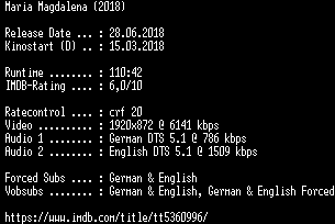 | FiLENAME: | Maria.Magdalena.2018.German.DTS.DL.1080p.BluRay.x264-COiNCiDENCE.mkv |