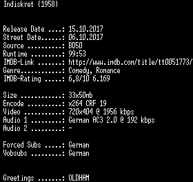 | FiLENAME: | Indiskret.German.REMASTERED.1958.AC3.BDRip.x264-SPiCY.mkv |