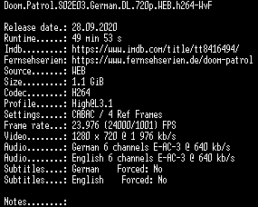 | FiLENAME: | Doom.Patrol.S02E03.German.DL.720p.WEB.h264-WvF.mkv |