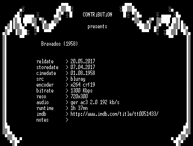 | FiLENAME: | The.Bravados.1958.Remastered.German.BDRiP.x264-CONTRiBUTiON.mkv |