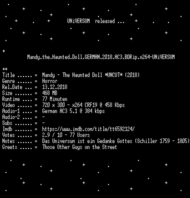 | FiLENAME: | Mandy.the.Haunted.Doll.GERMAN.2018.AC3.BDRip.x264-UNiVERSUM.mkv |
