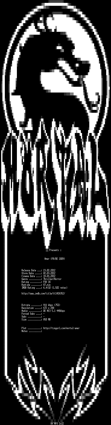 | FiLENAME: | Amer.German.AC3.DVDRip.XviD-MORTAL.avi |