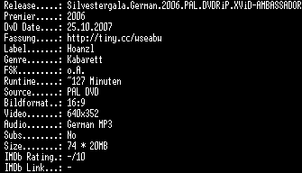 | FiLENAME: | Silvestergala.German.2006.PAL.DVDRiP.XViD-AMBASSADOR.avi |