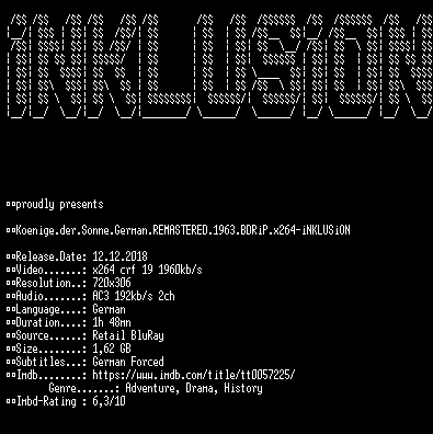 | FiLENAME: | Koenige.der.Sonne.German.REMASTERED.1963.BDRiP.x264-iNKLUSiON.mkv |