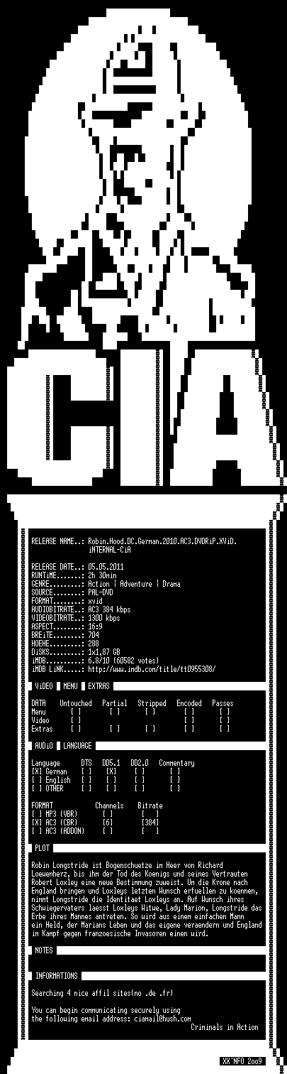 | FiLENAME: | Robin.Hood.DC.German.2010.AC3.DVDRiP.XViD.iNTERNAL-CiA.avi |