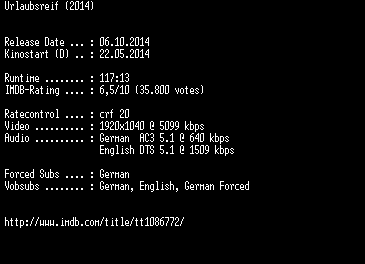 | FiLENAME: | Urlaubsreif.German.DL.1080p.BluRay.x264-EXQUiSiTE.mkv |