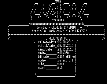 | FiLENAME: | Vorstadtkrokodile.2.German.AC3.DVDRip.XviD-LOGiCAL.avi |