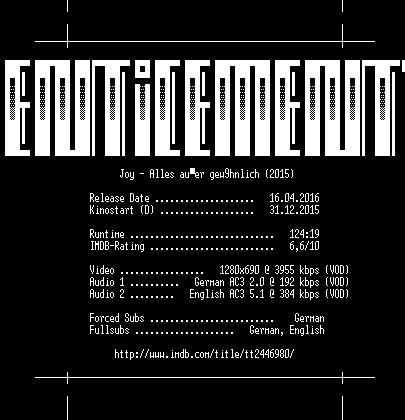 | FiLENAME: | Joy.Alles.ausser.gewoehnlich.German.DL.AC3.720p.WebHD.h264-ENTiCEMENT.mkv |