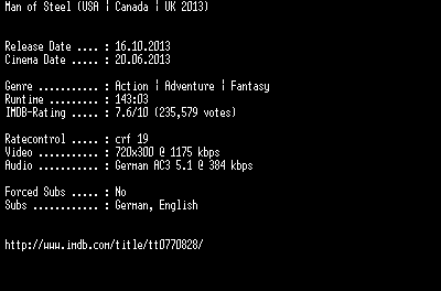 | FiLENAME: | Man.of.Steel.German.BDRiP.x264-EXQUiSiTE.mkv |