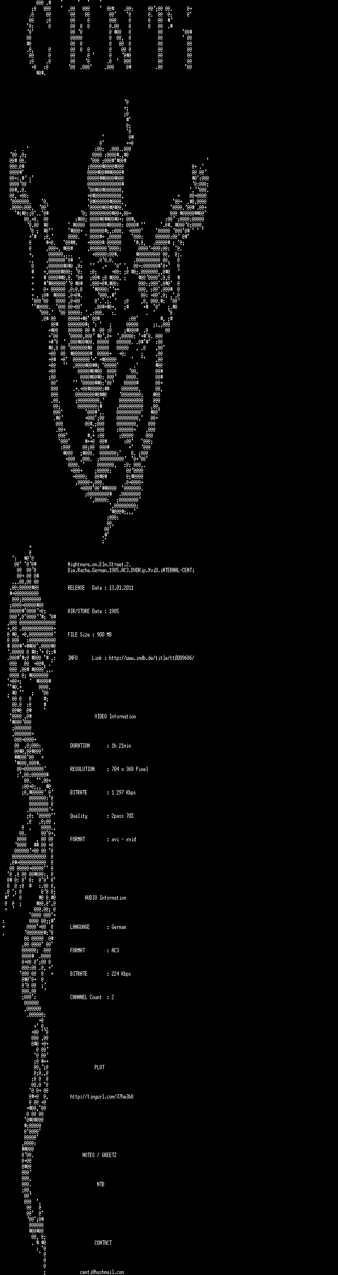 | FiLENAME: | Nightmare.on.Elm.Street.2.Die.Rache.German.1985.AC3.DVDRip.XviD.iNTERNAL-CENTi.avi |