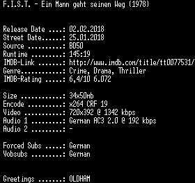 | FiLENAME: | F.I.S.T.-.Ein.Mann.geht.seinen.Weg.German.REMASTERED.1978.AC3.BDRip.x264-SPiCY.mkv |