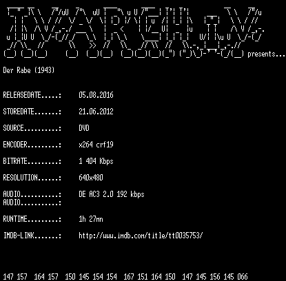 | FiLENAME: | Der.Rabe.1943.German.FS.DVDRip.x264-TVARCHiV.mkv |