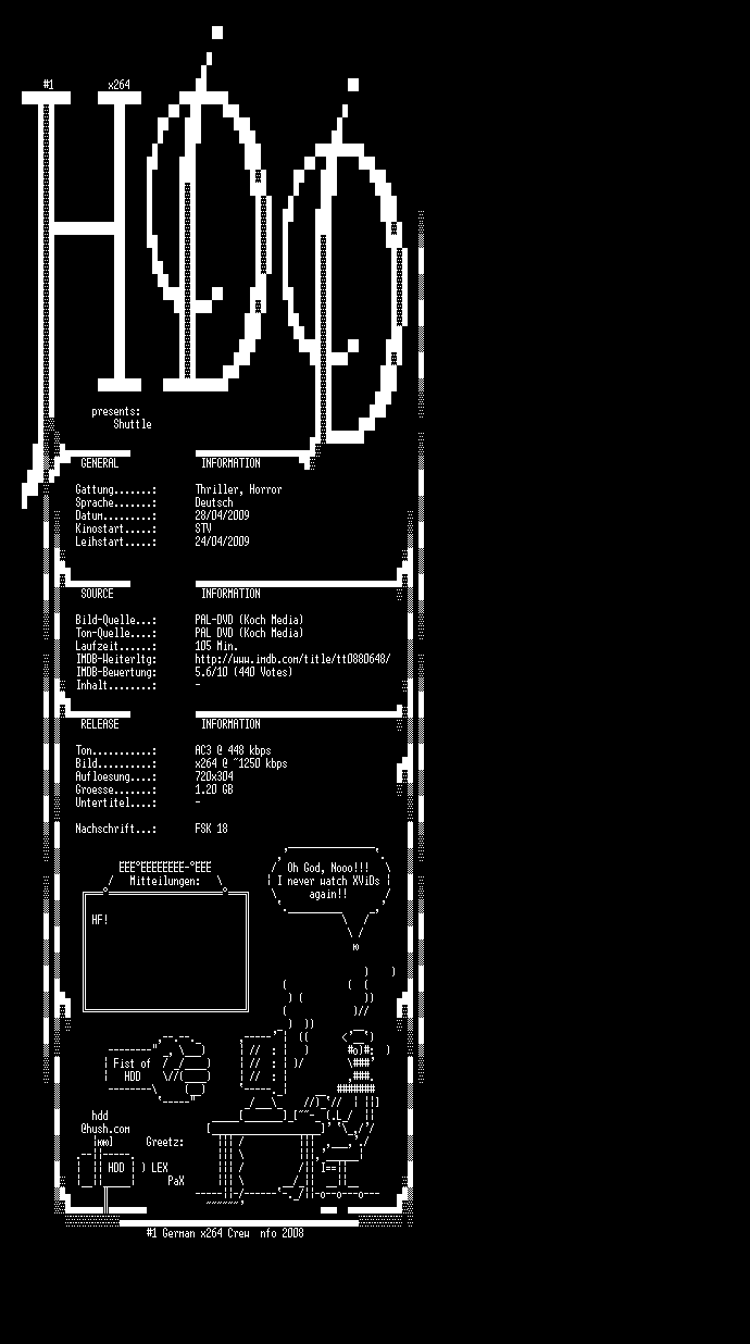 | FiLENAME: | Shuttle (2008) [GER-AC3 WS DVD].mkv |