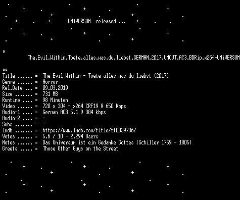 | FiLENAME: | The.Evil.Within.Toete.alles.was.du.liebst.GERMAN.2017.UNCUT.AC3.BDRip.x264-UNiVERSUM.mkv |