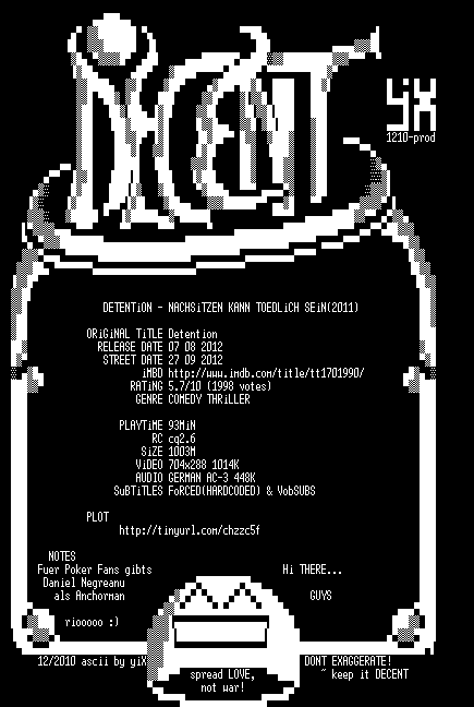 | FiLENAME: | Detention.Nachsitzen.kann.toedlich.sein.German.2012.AC3.BDRip.XviD-DECENT.avi |